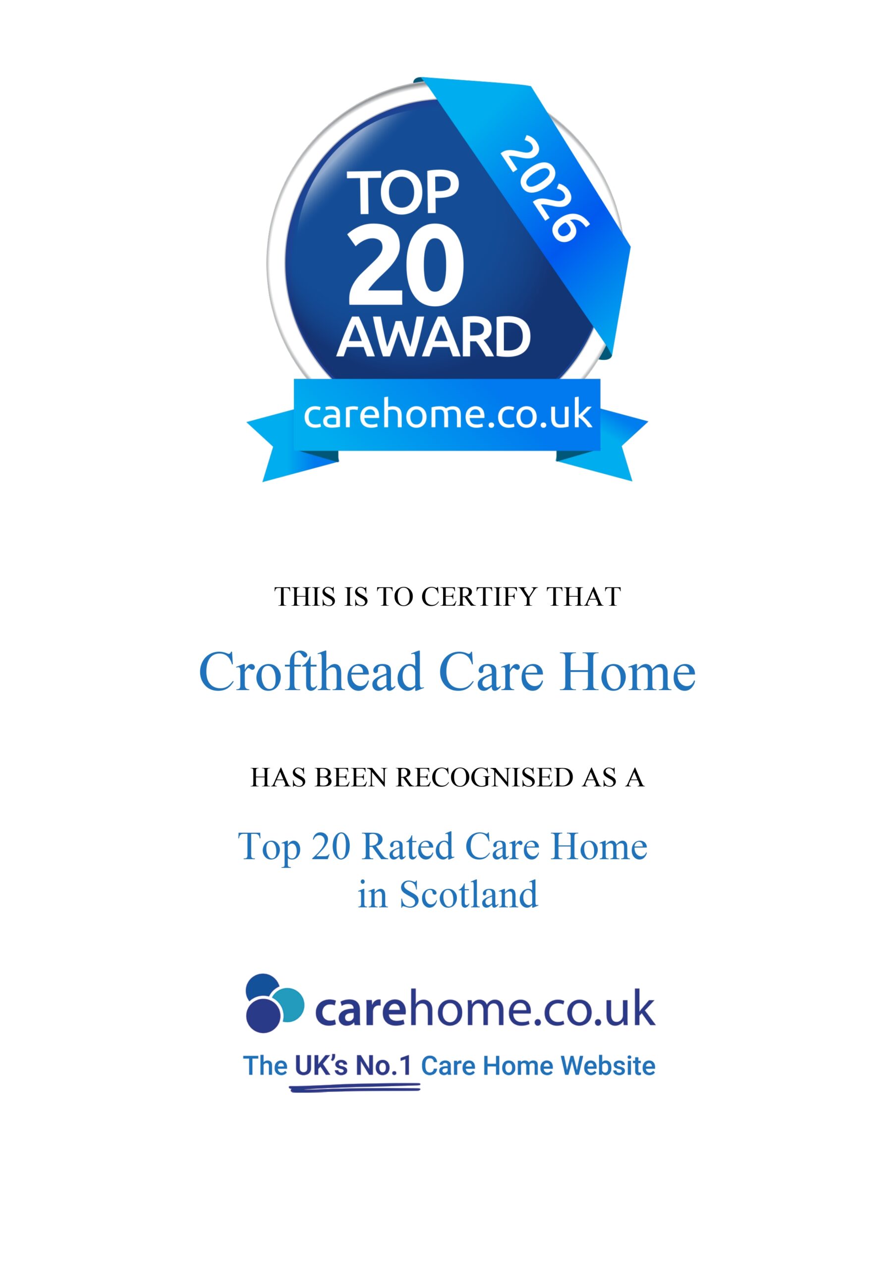 • Carewise Homes Ltd carehome.co.uk Top 20 Mid-size Large Care Home Groups 2026 Winner Badge Crofthead Care Home carehome.co.uk Top 20 Care Homes Scotland 2026 Winner Badge